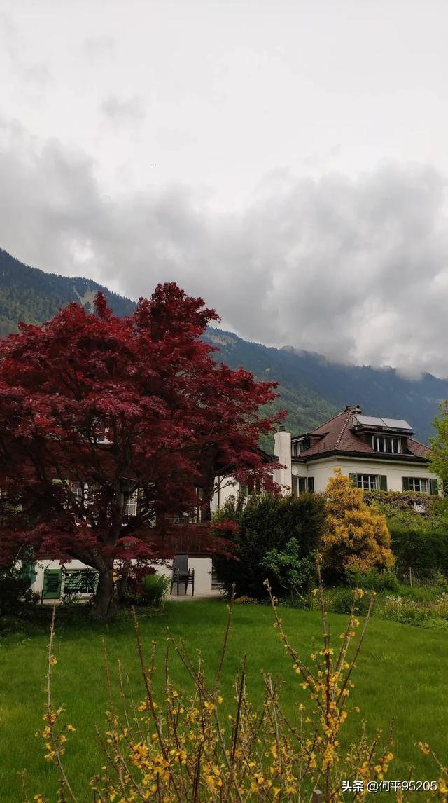 在瑞士的旅途中,我親眼看見阿爾卑斯山下風(fēng)景秀麗的自然環(huán)境,人們有的居所點(diǎn)綴在鮮花樹叢中,與大自然融為一體。