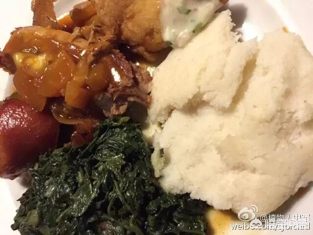玉米,這也是非洲人的主食,這些作物的產(chǎn)量高,容易處理。所以非洲有很多玉米的主食,比如玉米面做成的半稀半干的坨坨,像是做失敗的發(fā)糕。