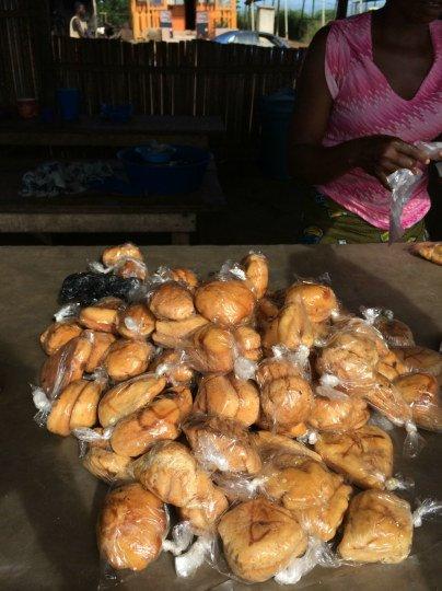 上圖是香蕉饃頭,吃起來是甜的,不過當(dāng)?shù)厝讼矚g拌咸味的醬汁吃。