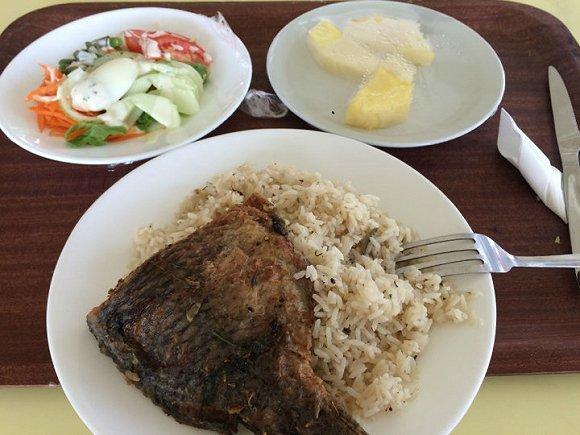 科特迪瓦面對著大西洋,沿海地區(qū)又有諸多內(nèi)湖,盛產(chǎn)各種海鮮河鮮,不同季節(jié)的市場上可以找到龍蝦大閘蟹烏賊魷魚海蠣幾乎任何一種你想要的海鮮,價格也不算太貴。但是據(jù)我的觀察,當(dāng)?shù)厝似綍r基本只吃魚極少吃其他海鮮,主要有金槍魚,羅非魚(非洲鯽魚)、海鱸魚、鯛魚等等。當(dāng)?shù)厝耸秤敏~的量比吃肉還要多,畢竟肉是要養(yǎng)出來的,魚只要靠捕撈就好。我們的食堂每天中午一般就是兩道主菜,一道是魚,一道是雞肉或者牛肉。