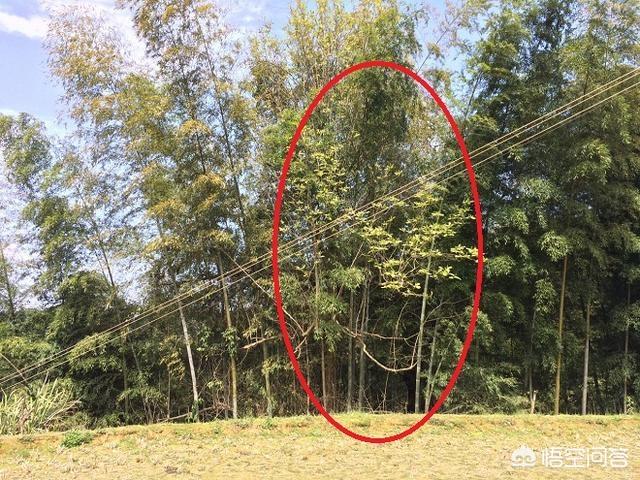 這個(gè)熱心村民把我們帶到位于宗祠下方一處開闊地,“樂昌含笑”就隱藏在稻田則面的竹林里,假如沒有熟人帶著路,外人根本無法找得到,紅圈圈著那棵就是。