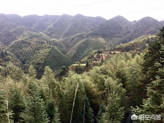 遠(yuǎn)望對面山坡,出現(xiàn)了一小村莊,猜想也就是我們要去的上茶坪村了(白色的房屋)。