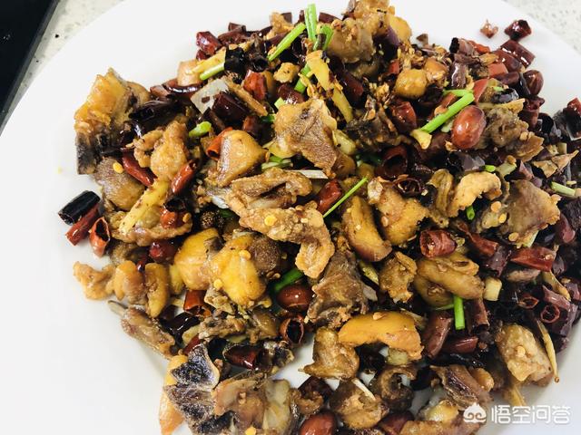 1;辣子雞?;旧先巳硕贾肋@道菜,做法也各有不同,我的做法是:準(zhǔn)備雞腿肉500克,干辣椒段100克,肌肉剁成小塊兒用料酒、大蔥、生抽、食鹽腌制半個(gè)小時(shí)。鍋里多倒點(diǎn)油,7層熱的候把雞肉下下去炸,炸至表面焦黃撈出,關(guān)火,用油鍋里的余溫把辣椒段炸一下,記得迅速出,要不然糊了,再抓一小把花生米油炸一下,全部撈出鍋裝好。鍋里留點(diǎn)油,放蒜末、姜末、花椒炒香,然后把事先炸好的雞肉、辣椒、花生一起下鍋翻炒,這個(gè)時(shí)候可以關(guān)火了,用余溫就夠了翻炒幾下就可以出裝盤了,撒一點(diǎn)蔥花作為裝飾就好了。