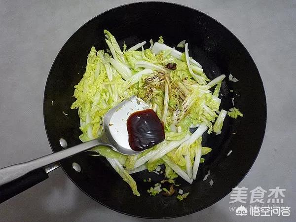 5.煸炒出娃娃菜中的水汽,加入醬油、蠔油少許食鹽