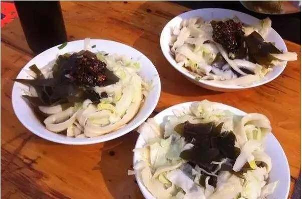 店內(nèi)只賣刀削面,而且只有一種臊子,圓白菜配海帶,海椒油是店里一絕,只要你不怕辣,海椒油隨便加,不過也有很多人吃不慣這種味道的面食。