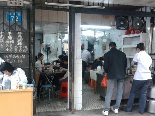 這是一間連招牌都沒有的小食店,簡陋的鋪面,生意卻異?;鸨?,甚至食客很多都是蹲在門口旁邊的木板凳就吃起來了。