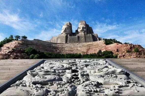 炎黃二帝巨塑背依邙山,面向黃河。塑像占地2816平方米,像整體高106米,其中,山高55米,像高51米,雕塑中高者為炎帝,矮者為黃帝,所使用的材料均是太行山真石。巨塑以山為體,使山人合一,渾然天成,融黃河、黃土、黃帝三者與一體,以體現(xiàn)與大地共生,與山川同在,與日月同輝,氣勢磅礴、雄渾、博大的藝術(shù)效果。