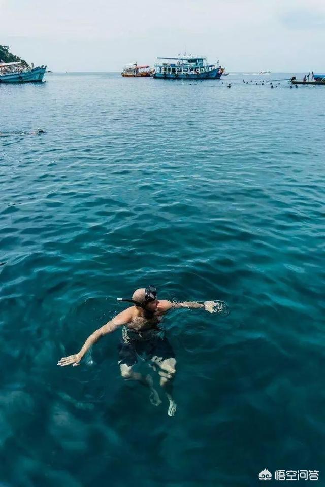穿戴好設(shè)備潛入在蘇梅島最佳的浮潛點(diǎn)濤島的海里,用手去觸碰水底的海參。大膽地往外海方向浮潛,看到珊瑚群和顏色、形態(tài)各異的大魚小魚,海膽都隱藏在巖石邊上的。